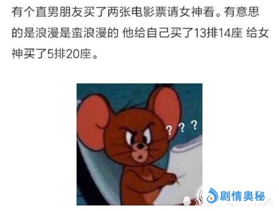 还有一个哥们,完全就是自己作的,这个哥们请女朋友看电影,专门有心的买了一张13排14号的座位给自己,买了一个5排20号的座位给女神,然后就没有然后了。