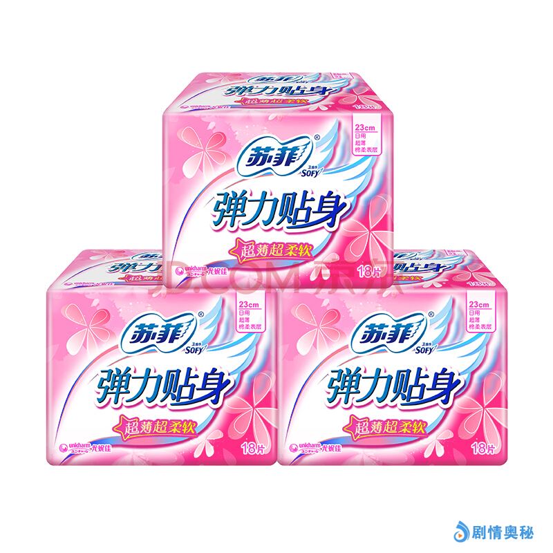 苏菲(sofy)弹力贴身系列 丝薄 日用 洁翼型卫生巾 230mm*18片*3包优惠装(新老包装随机发放)