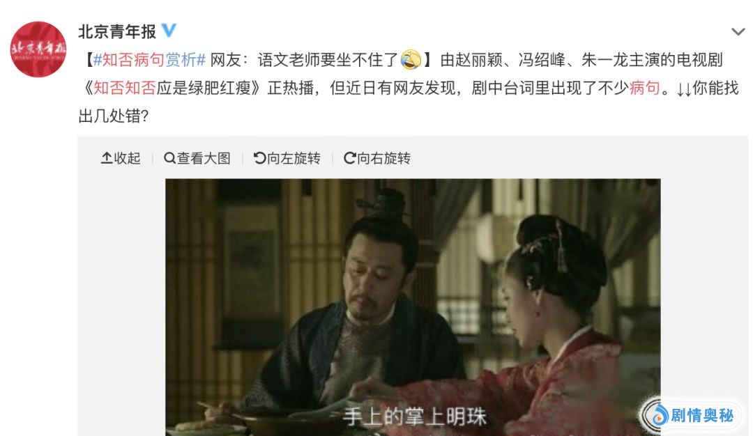 但自开播以来,《知否》就陷入了“病句”争议,人物口中一些有明显错漏的表述令观众兴趣大减,产生质疑情绪。