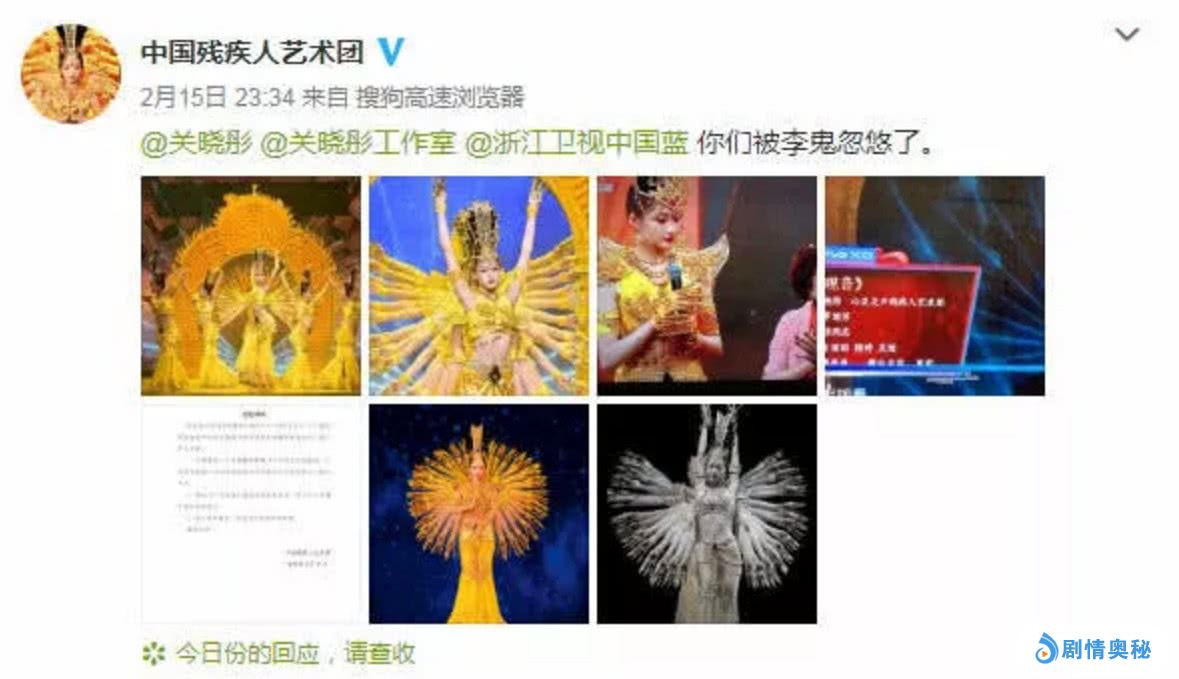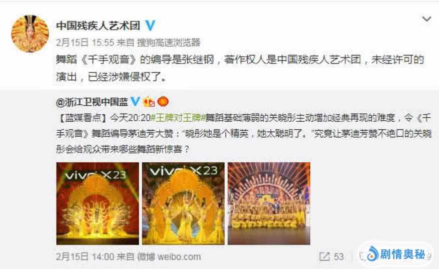 但紧接着就因为这个节目太过于完美在网络上火速传开后引起了中国残疾人艺术团的注意,太团队在官微上也连发两条微博,直指这个舞蹈是侵权了的。