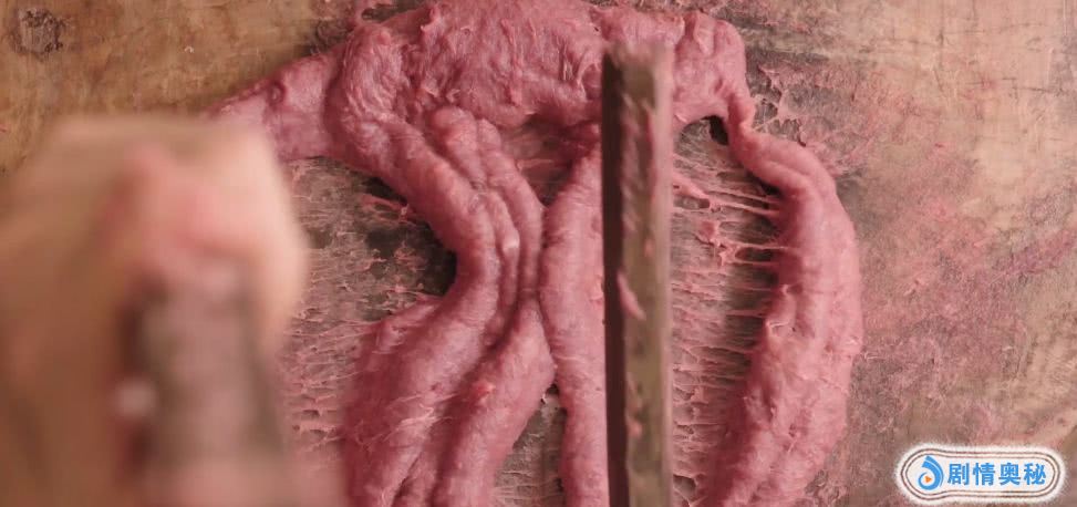 短时间的操作也形成了处理后的牛肉因为神经末梢的存活,牛肉依旧跳动的“奇景”。