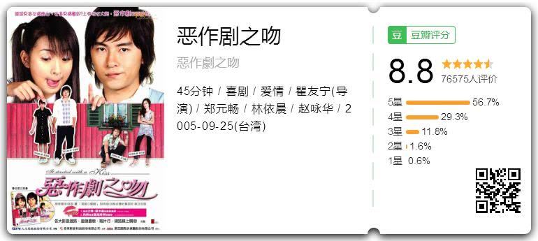 仅从豆瓣评分来看,2005年的《恶作剧之吻》评分高达8.8分,而《一吻定情》仅有5.4分。