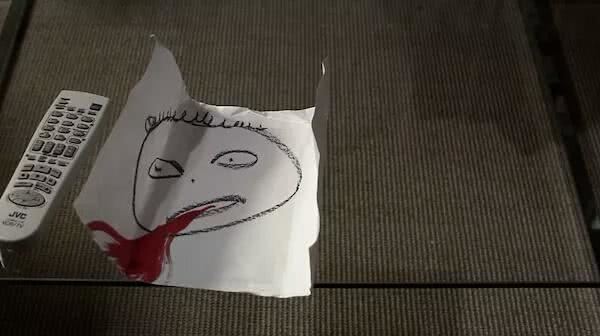 和录像带一起出现的,是一张诡异的手绘画。画作中,男孩口吐鲜血,像是在暗示什么不好的事情。