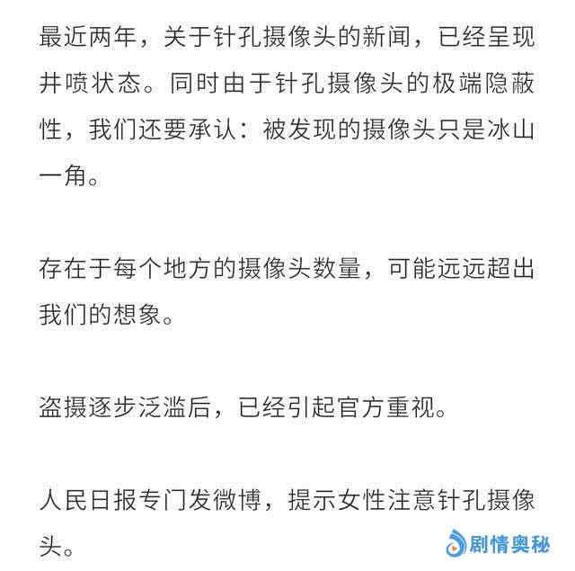 文章中,有一个女生的生活不慎被酒店偷拍,以这件事情为出发点,深入探讨现实生活中存在的“针孔摄像头偷拍人们生活”的恐怖现象。