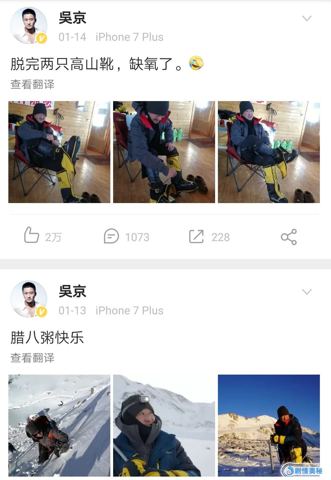 此前吴京在微博多次晒出登山照片,想必也是在为电影做准备。出演完宇航员,“战狼”吴京又要征服珠穆朗玛峰了!