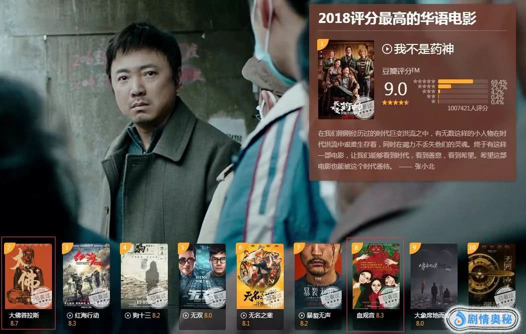 豆瓣 2018 年评分最高的十佳华语片中,就有《大佛普拉斯》和《血观音》。