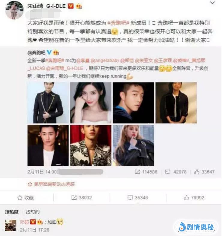她发文后没过多久,作为已经退出的邓超很快就出现在了评论区,并且说了“加油”两字也真是内涵满满啊,一方面是对宋雨琦的鼓励,另一方面也是对节目的祝福,其次也是自己对过去和未来的期望。