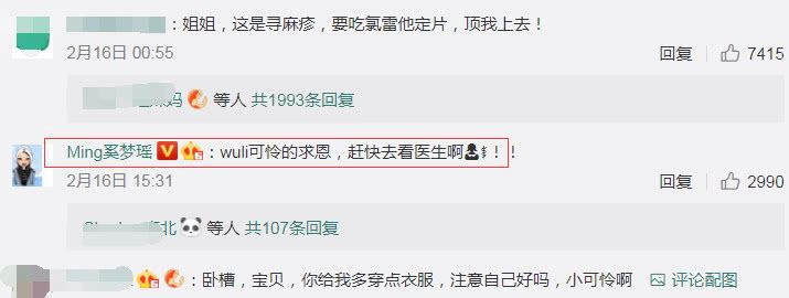 陈乔恩凌晨晒照后,粉丝们是又心疼又着急的,大家纷纷表示:“照顾好自己,你是不是又没穿秋裤!”“擦药了嘛?心疼”,还有网友在评论区说陈乔恩长得是荨麻疹,要吃的药都贴心标注了出来,不得不说陈乔恩这一届粉丝真的是非常暖心啦!除了粉丝以外陈乔恩的评论区还有一位女明星也非常关心和着急。