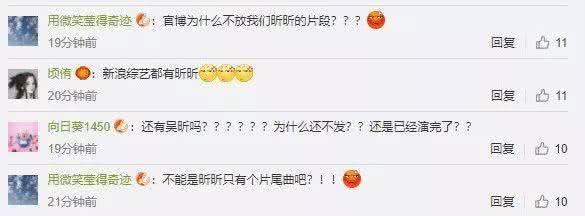 没过多久,官博下面的评论竟然都在询问吴昕的片段为什么没有发出来。