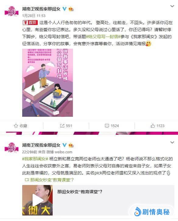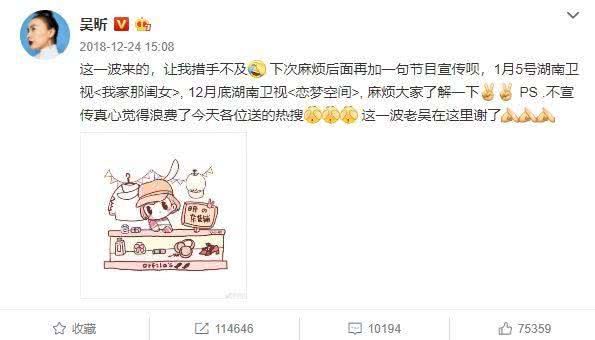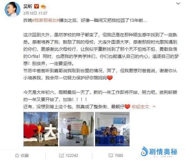 去吴昕微博上一看,关于《我家那闺女》的微博也被删剩了两条,一条是回忆母校,另一条则是因为自己上了热搜,顺便宣传了自己的另外两档综艺。