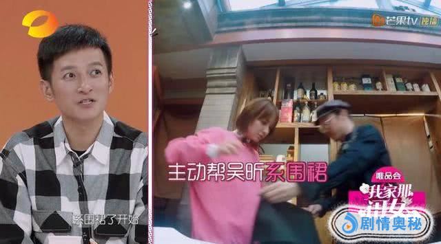 另一次是和厨师黄研。因为黄研帮吴昕系鞋带、系围裙,节目组放大了这些细节,让两个看起来有cp感。