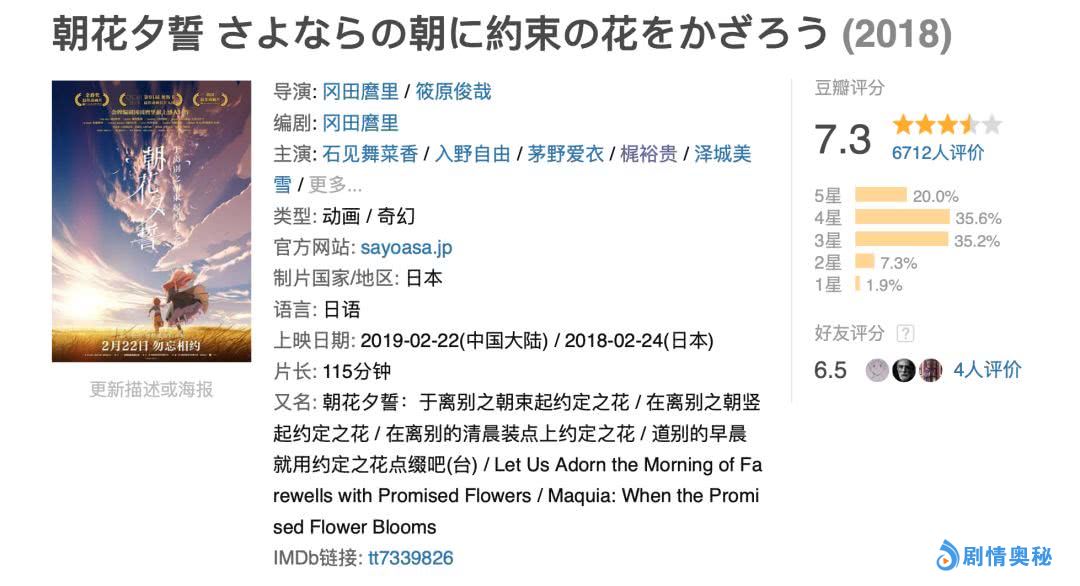 评价也还不错,豆瓣7.3分,不过同样也是在日本已经上映了一年了。