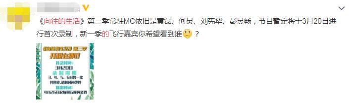前段时间开播的综艺节目层出不穷,芒果台播出的《我家那闺女》《妻子的浪漫旅行》一直备受大家的喜爱,收官一段时间的《奔跑吧兄弟》官微也宣布了新一季MC人选,虽然变化很大却依然令人期待,《跑男》都官宣下一季阵容了,如今观众都想知道的就是《向往的生活》这档爆款综艺人选有没有什么变化。