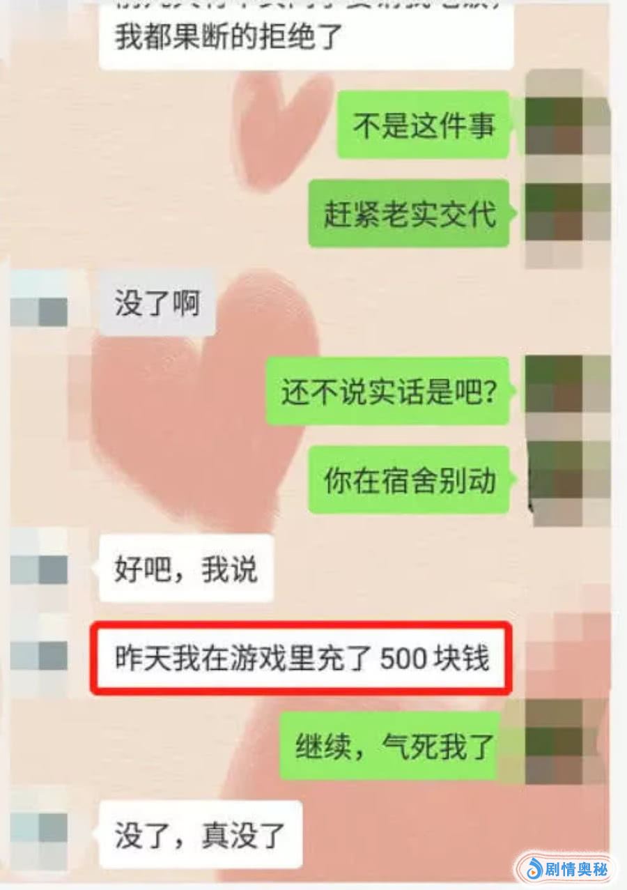 女生一看有效果,立即趁胜追击:不是这事,你还不交代?谁心底还没有点小秘密啊,这个男生也是真的心虚了,于是交代说自己在游戏里面充值了500块钱,女生一听这事,瞬间就炸锅了,“气死我了”。没想到男生这么喜欢玩游戏啊。