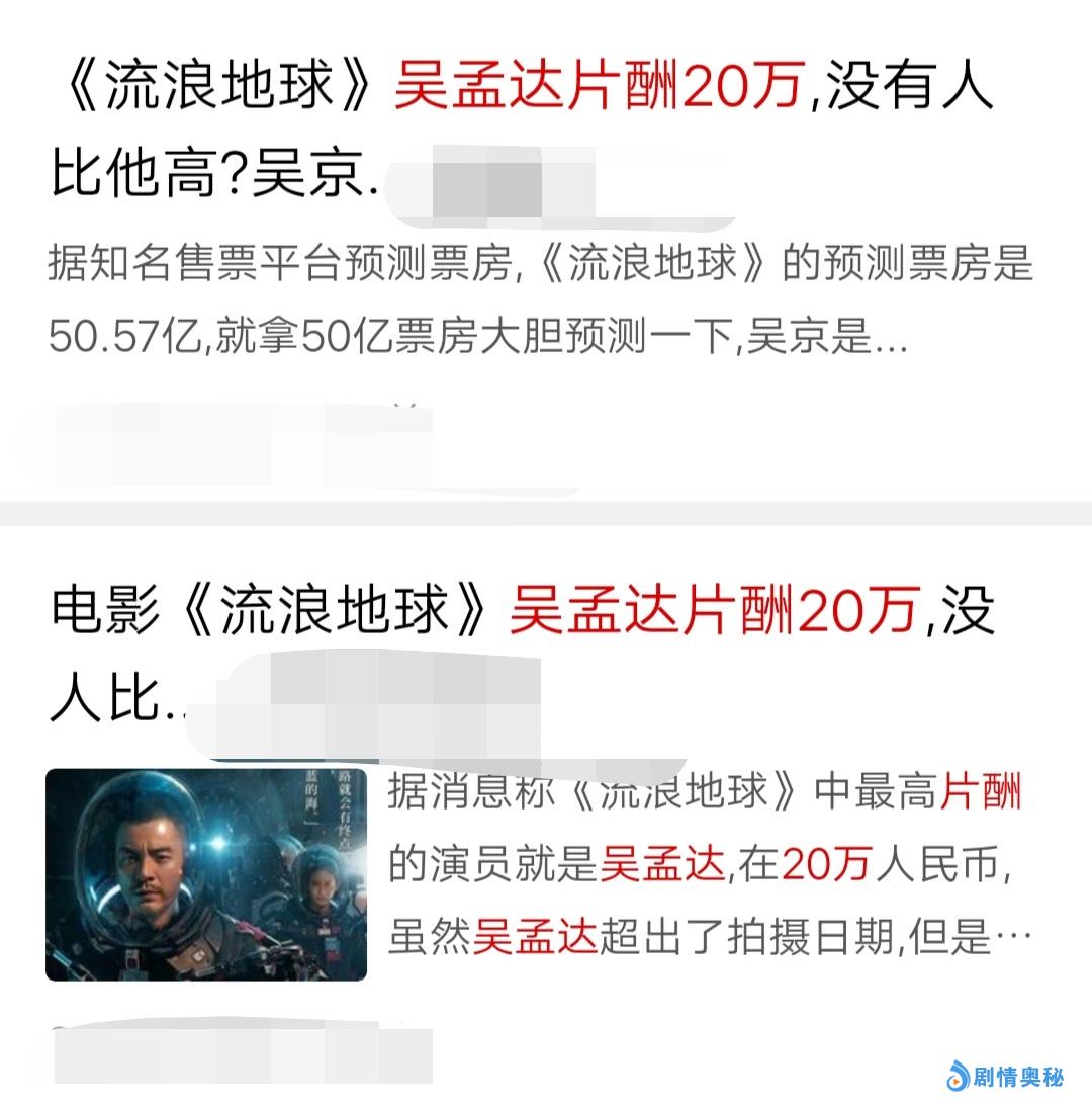 屈楚萧、赵今麦这样的主角片酬就是低得可怜,而吴京是零片酬,这就连吴孟达的片酬也还被降。