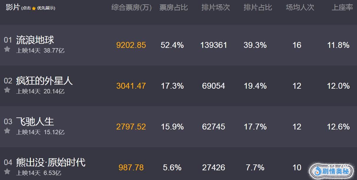 明天就是元宵节了,2019猪年春节马上就过完了。今年春节档几位巨星赚得盆满钵满,票房净利润最高的当然是吴京科幻大片了,第二赚钱的是黄渤沈腾的大片。春节这几部大片最能逗观众开怀大笑的其实是《疯狂的外星人》,该片娱乐元素多,诙谐幽默最适合春节合家欢了。