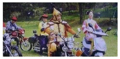 看到这个画面你要是能忍住不笑我算你赢!皇帝、宫女、太监一行人都骑着摩托车,这不知道是在演骑马呢还是要赶着去下一场戏的片场呢,要是清朝有摩托车,那《还珠格格》就会成为最早的穿越剧啦。
