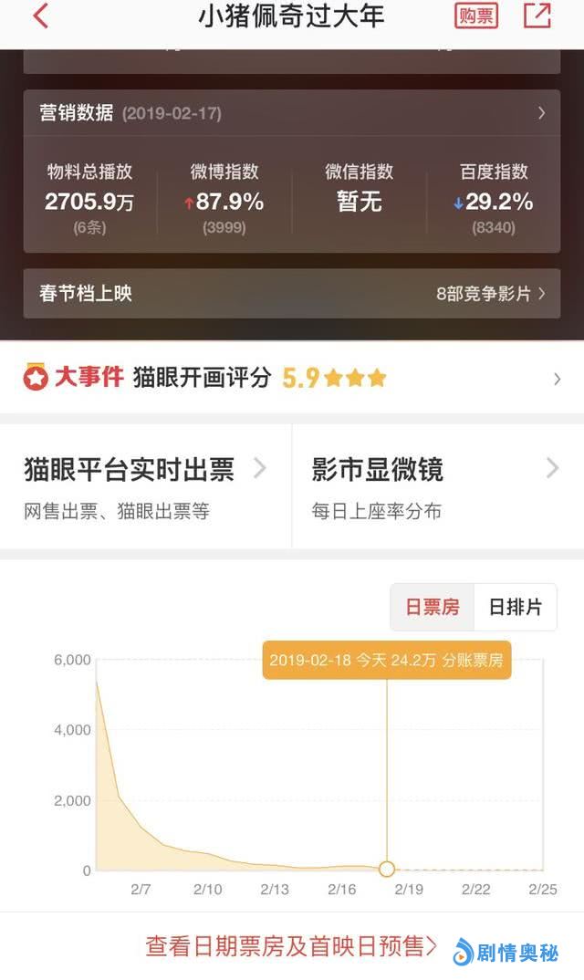 虽说从目前而言,《小猪佩奇过大年》在票房和口碑都落后于《熊出没》,不过,大年初一上映首日之时,《小猪佩奇过大年》的排片比《熊出没》要高。