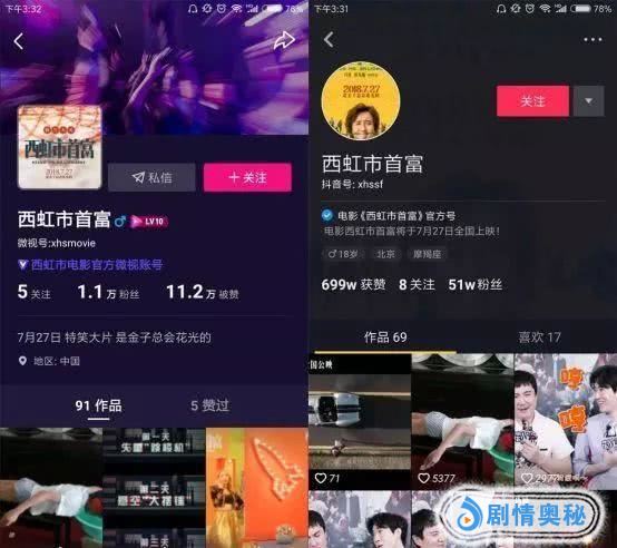《西虹市首富》建立了各种官方号。在抖音上,其账号短时间内,粉丝数量就达到了51万,视频点赞最高达到183.7万,用户评论近4万。