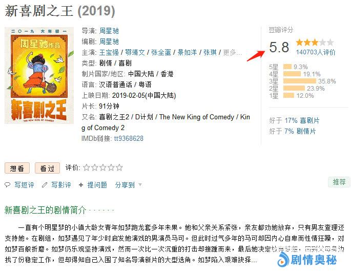 一个仅有70秒的影片预告片中,但致敬《喜剧之王》的镜头多达十余个,一度被网友吐槽炒冷饭,卖情怀。而后第二支预告虽然挽回了一丝希望,但是到了正片上映后,依旧得不到影迷和观众的认可,甚至豆瓣评分从开画的6.4分,一路跌至到了如今的5.8分,几乎是创了星爷创作以来历史新低。