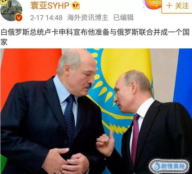 而看过《三体》的小伙伴们都知道刘慈欣在书中,写过,俄罗斯和白俄罗斯合并,国名仍叫俄罗斯联播。网友不得不惊叹大刘跳了预言家啊。还是说wuli普京大大也喜欢看《三体》呢?