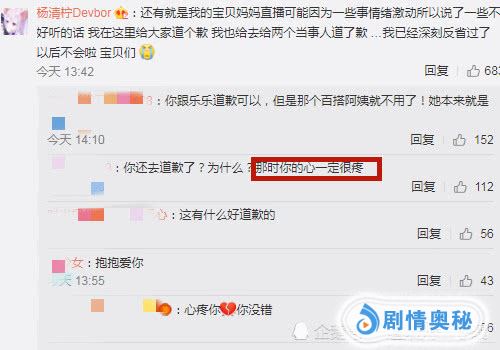 主要是因为杨清柠的妈妈在开直播的时候情绪非常的激烈,所以说了很多的话,众人在听到之后都是十分心疼杨清柠的。虽然杨清柠的这条微博是非常简单的,但是我们在评论区却发现了她所评论的另外一句话,在看到这句话的时候,很多人也是感觉很心疼的。杨清柠写的是她的妈妈在直播的时候因为一些事情激动,所以说了很多不好听的话,她在此向大家道歉,并且也去给两个当事人都道了歉,杨清柠还说自己已经深刻反省过了,以后不会再出现这种状况。