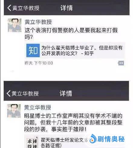 而网友查到翟天临博士期间,公开发表的一篇题为 《谈电视剧中“白孝文”的表演创作》,被原文作者黄立华谴责,“我十几年前发表的论文,被其整段整段抄袭,事实胜于雄辩”。