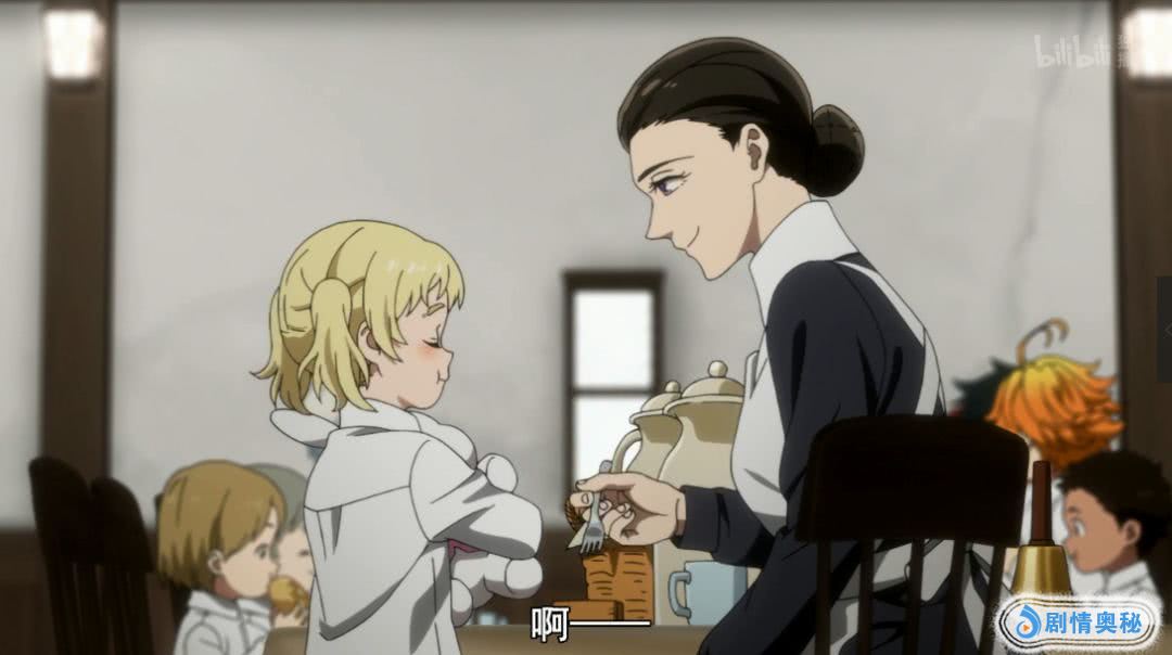 果然,在历经前半段的岁月静好后,动画很快就在第一集的后半段开始发力,揭晓这所孤儿院的惊天真相——