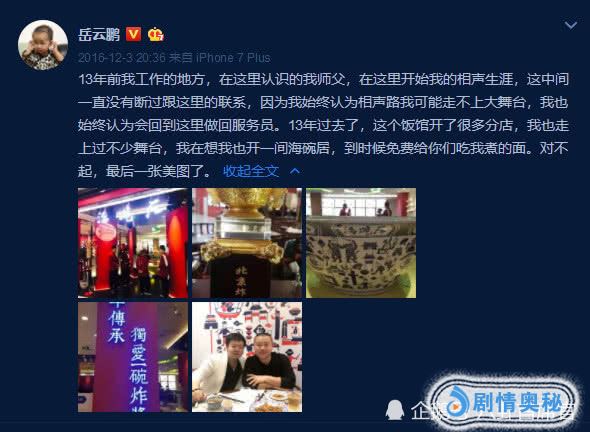 最初看到这个消息的时候,感觉到有些不可思议。因为就在去年,他还作为一个消费者吐槽过某机场,一碗面就要八十八元而上了热搜,怎么会做这种自砸招牌的事情呢?再细细探访下去,这家面店对他的意义特别的大。大家都知道,在没有学习相声之前,他是在一家炸酱面店当服务员。而他合资的这家面店,就是他当服务员的那家面馆的分店。