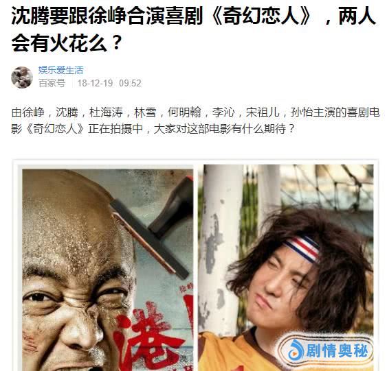 此前,有自媒体在网上发布消息称:徐峥、沈腾领衔主演的喜剧《奇幻恋人》目前已经开启了前期拍摄,预计很快将召开发布会,主演阵容中还有杜海涛,林雪,何明翰,李沁,宋祖儿,孙怡等,导演是沈哲浩。