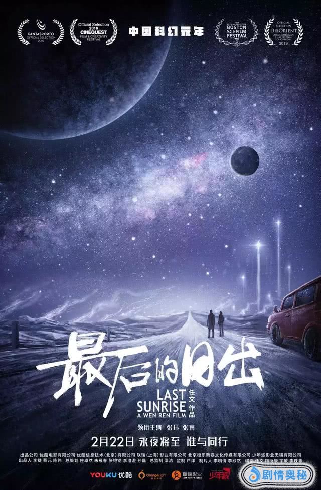前不久,《最后的日出》也宣布定档2月22日,并在优酷平台独家上线。这其实是一部由华裔导演任文执导的网络电影,影片主要讲述的是未来太阳消失后,社会体系逐渐瓦解,人类为求生存开始掠夺生存资源的故事。根据新华网娱乐的报道显示,该影片的联合制片人也参与了《流浪地球》的幕后创作,而且影片只用了《流浪地球》百分之一的成本。