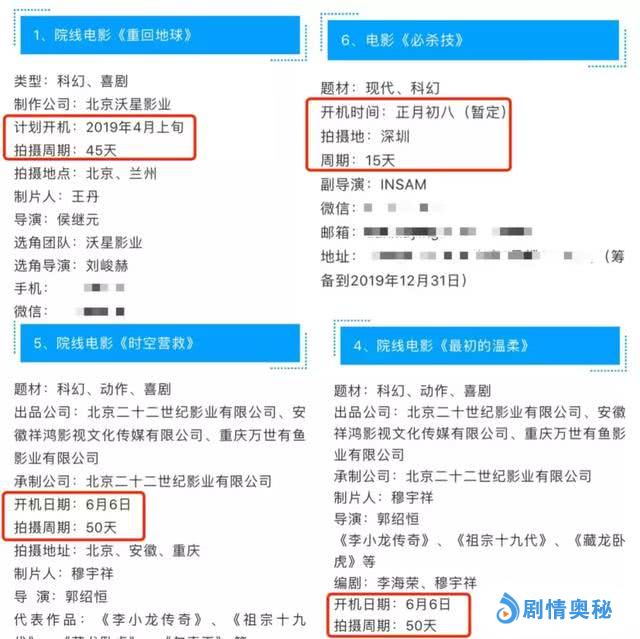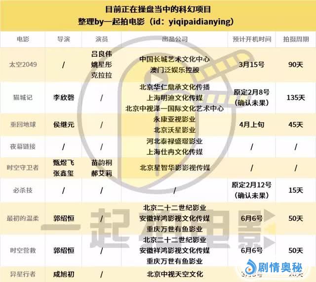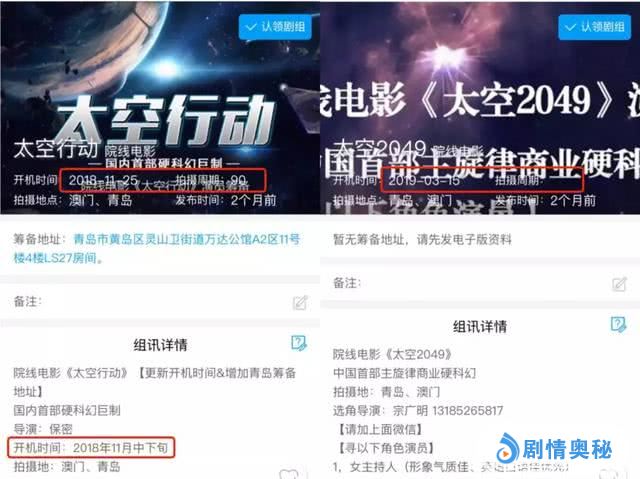 实际上,上文表2中某些正在筹备的科幻项目,剧组信息中所公示的拍摄周期较短,有的甚至仅有15天。不仅如此,信息还出现了同时期同团队操盘两个项目的情况。