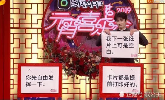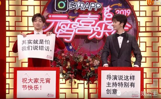 等到主持人报幕的时候。突然出现了两个新人,一句话不说,就在那一张卡片一张卡片的往外拿,卡片上写“祝大家元宵节快乐,导演说这样主持特别有创意,其实就是怕我们说错话”。