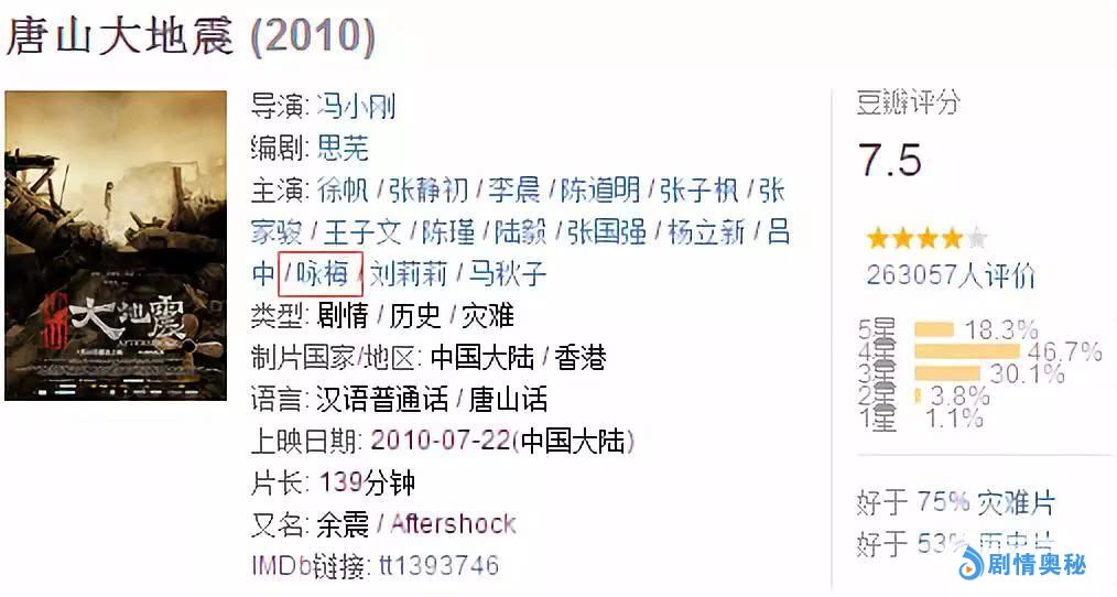 让小影感到惊讶的是,她在《唐山大地震》中打过酱油,戏份不多,角色性格也不够出彩,毕竟不能抢了主角光环呀。