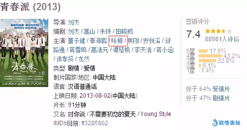 不仅如此,她还在《青春派》中客串了居然妈妈,虽然还是配角,不过她却成功抢了主角光环,被提名上海电影节最佳女配。