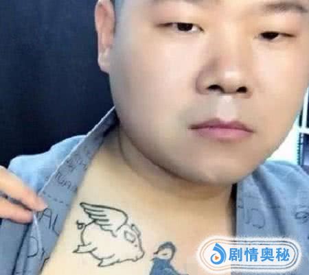 岳云鹏的纹身也很可爱,这个是他在拍摄电影时候的纹身,应该是为了更符合角色然后做上去的