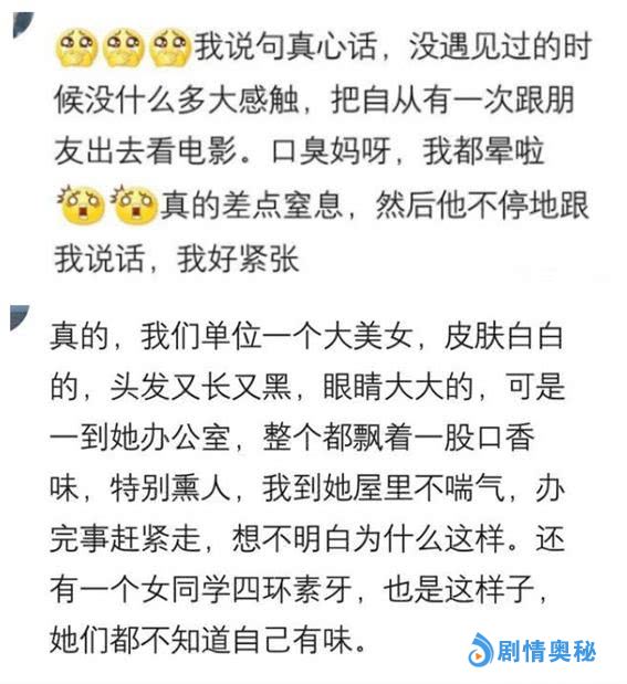 不仅仅如此,朋友、室友、同事有口臭的各类问题也是超多,吐槽也是五花八门。