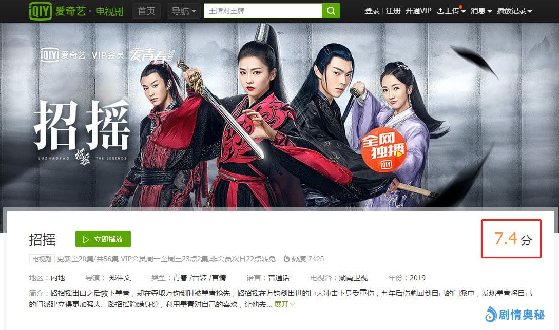 从两部剧热播后收视情况上看,在不同时间段均是取得不错的收视成绩,而且几乎是位于同段时间收视率榜首。除了在收视率位居榜首,该剧的口碑上也得到了观众和网友的一致好评。豆瓣网友虽然给电视剧《招摇》仅有5.7分的评价,但是好评率却达到了51%,而且对于《招摇》,爱奇艺平台也给出了7.4的高分好评。不仅如此,从观众观剧的效果和对该剧的评价,也可以看得出,该剧不仅尊重原著,剧中男女主除了颜值过人,演技也均在线,而且随着剧情的进一步发展,也吸引了不少观众的眼球。