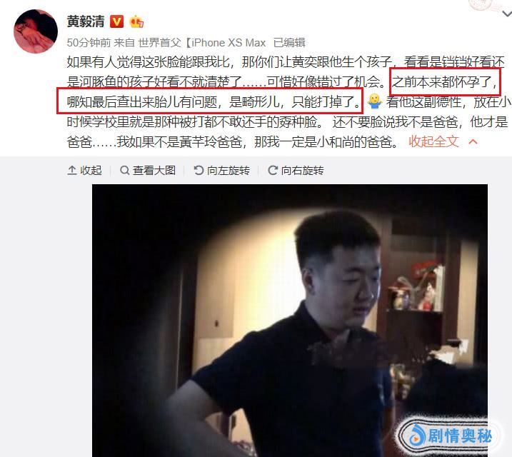 最猛的料还是黄毅清爆出黄奕本来已经怀孕了,哪知查出来胎儿有问题,是畸形儿,只能打掉了。不得不说,黄毅清维护女儿可以理解,但在攻击对方的言辞上毫无底线,非常恶毒,这种言论除了泄愤毫无依据,只能图自己的一时口快!