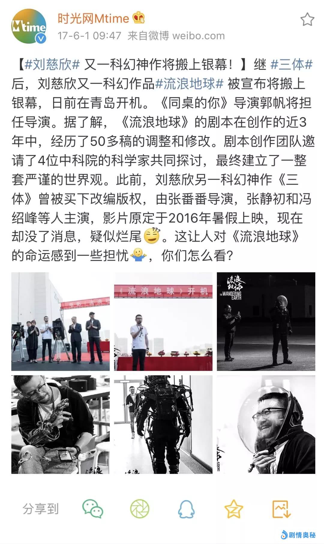 其中还有一个小插曲,当时中影制片公司有三部刘慈欣的科幻电影《流浪地球》《微纪元》和《超新星纪元》,郭帆挑中了《流浪地球》,但其实在找到郭帆之前他们还找了卡神、阿方索和吕克·贝松,期望他们能来执导刘慈欣的电影,没有意外,被拒绝了。
