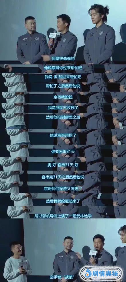 龚格尔坚定地表示了拒绝,郭帆执意的表示了“你行”的态度,龚格尔也来来回回表示“我不行”的拒绝意思,就这样你来我往的推脱了半天,龚格尔还是上了这个流浪的星球。