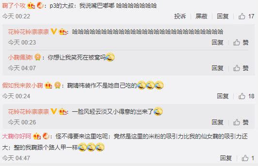 在粉丝捕捉到的鞠三碗的画面中,并没有看到非常满足的表情或者动作。比起兴奋,可能要更倾向于平静一点。装作不是自己吃了三碗?还是得意洋洋?有趣的是,当小鞠准备从店里出来的时候,周围忙着吃粉的人好像根本没时间看上一眼。或许是碗中食物的魅力太大!“竟然是这里的米粉的吸引力比我的仙女鞠的吸引力还大,整得我鞠跟个路人一样!”就连粉丝们不禁感叹米粉的威力之大。