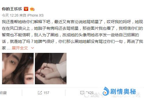 而王乐乐也是替允恩解释说她并没有骂任何的明星,而且还说允恩脾气特别的好。王乐乐说这是黑粉为了黑允恩而故意所做的事情,并且表示了自己的立场,他绝对相信允恩是不会做这样的事情的。但是很多网友在看到的时候,却表达了自己极度的不满,有的网友评价说:为什么你来给她解释,她自己不会给自己解释吗?她就不会为自己辩解吗?她有你就了不起了吗?从网友的评价当中我们也可以体会到网友们心中的不满。小伙伴们,你们在看到王乐乐发的这条微博的时候又是什么样的感受呢?