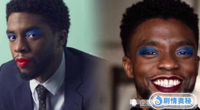 接着是黑豹出场了,在剧中黑豹一直是很正经的存在,可当他画上了彩妆之后完全就是变了个人,简直就是很魔性了,蓝色眼影加上大红唇,一口大白牙更是突出,你有没有被他给迷倒呢?