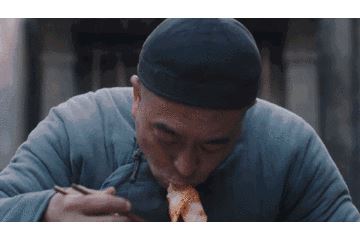 这场戏中完美的体现了人物的情感,拼命的吃烤鸭但是又将悲伤演绎出来了