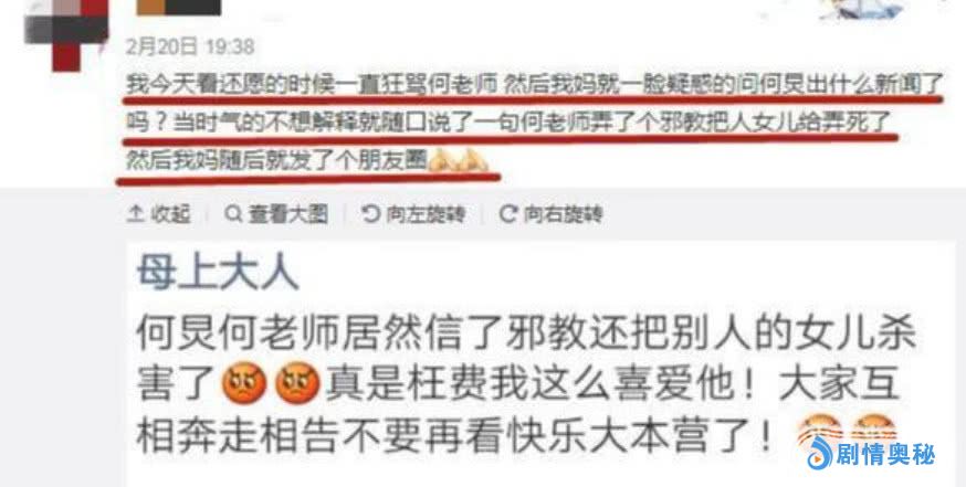 事情是这样的:一个妈妈发了朋友圈,何炅何老师信了邪教,并且还杀死了别人家的女儿。表示很气愤,建议大家以后都不要去看快乐大本营了。纳尼?wuli何老师信啥教了,还杀人了?吓死宝宝了!