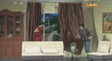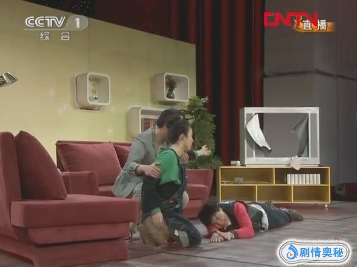在这个小品中,最搞笑的就是郝建和“前夫哥”捉迷藏场景。