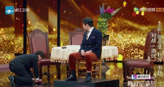 第一位上台的王阳,刚出场就趴在地上四处倒腾。
