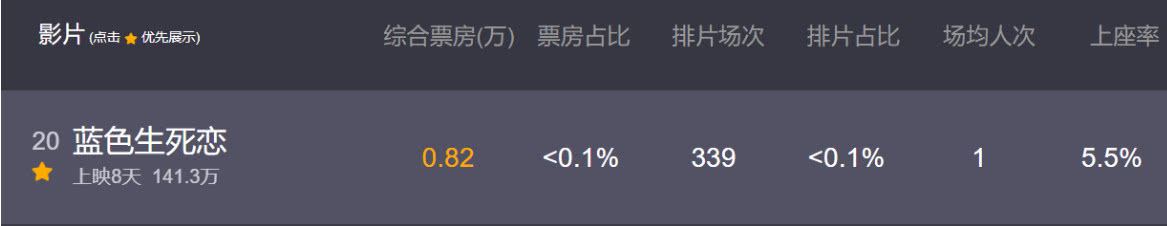 而其他的《五十米之恋》《今夜在浪漫剧场》都相当惨淡,其中《蓝色生死恋》最让人感到可惜