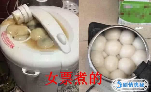 第一眼看过去就是惨不忍睹,明明是同样的一个果,明明是同样的道具,把水放进去,把汤圆放进去不就成了吗?为什么还会煮成这个样子?都完全看不出来,他们原本应该有的样子了,反光,再看看妈妈煮的汤圆